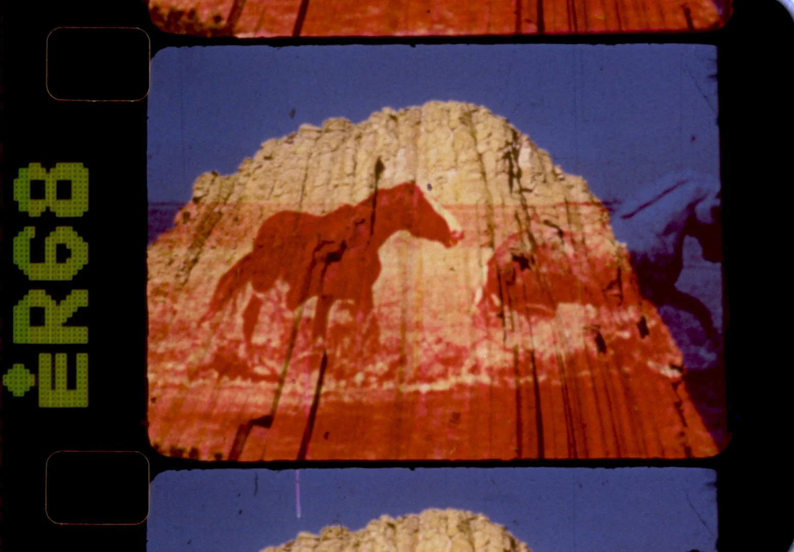 “A bunch of wild horses were set on fire for his film and consequently died after it was made. I found a copy of the film in color faded bright red on Ebay for $10 and altered and destroyed it by hand and then optically printed it back onto 16mm film.”